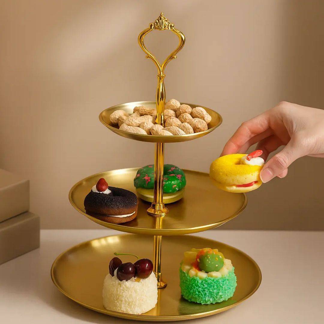شیرینی خوری ۳طبقه استیل طلایی