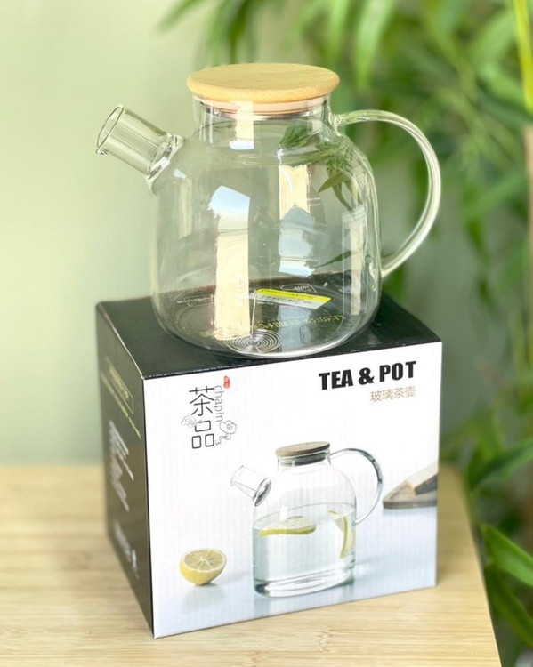 قوری پیرکس شعله مستقیم با درب بامبو خارجی